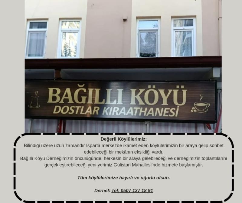 Bağıllı Köyü Derneğimizin öncülüğünde, herkesin bir araya gelebileceği ve derneğimizin toplantılarını gerçekleştirebileceği yeni yerimiz Gülistan Mahallesi’nde hizmete başlamıştır.